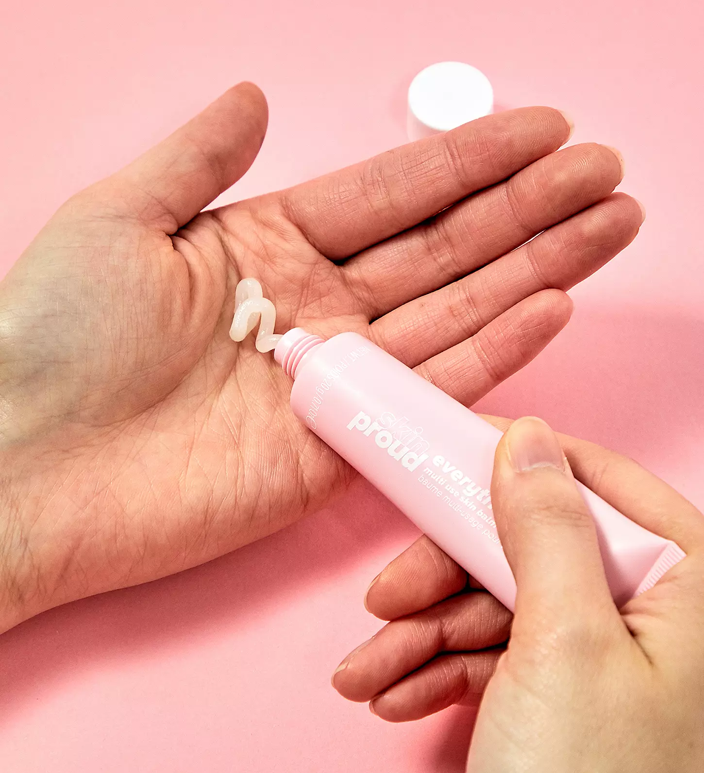 Skin Proud Everything Balm is a multi-use skin balm designed to deeply nourish, protect, and hydrate dry areas of the skin. Enriched with nourishing coconut oil, this compact balm is perfect for everyday use on lips, hands, cuticles, elbows, and other dry patches. Its gentle formula makes it suitable for daily skincare routines.